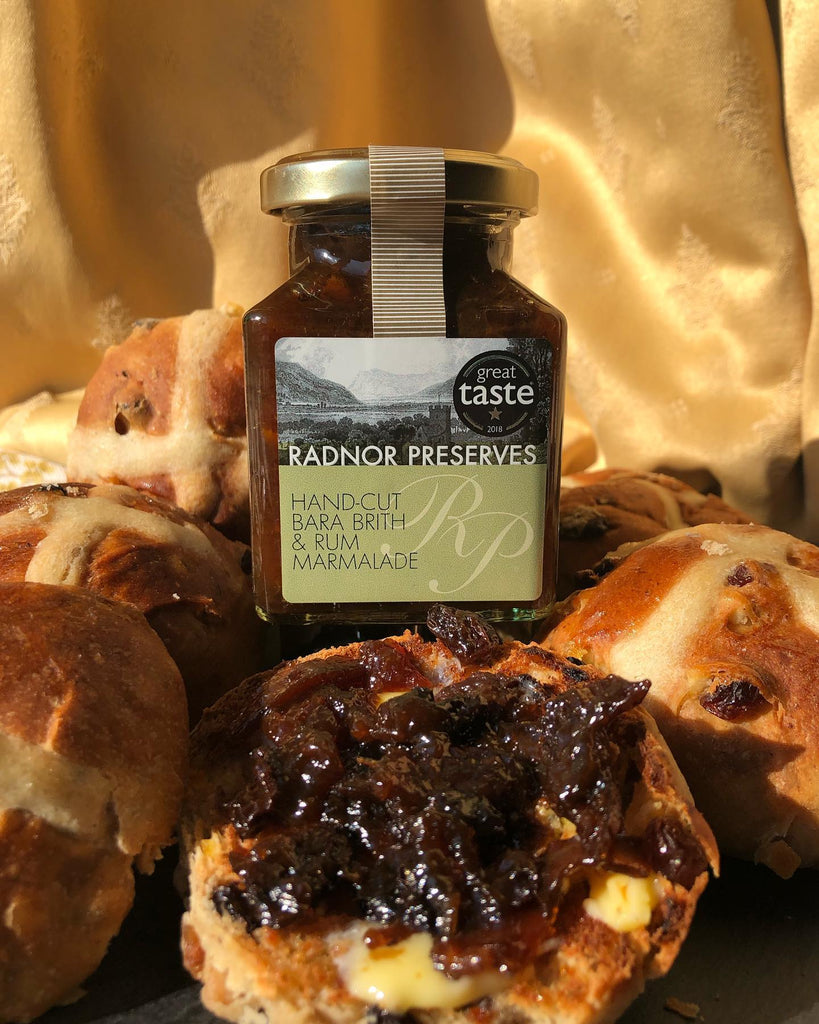 The essence of Bara Brith, celebrated for its high fruit content and orange peel, has been transformed into the most amazing marmalade with Barti Ddu Spiced Rum. Try on hot buttered teacakes.